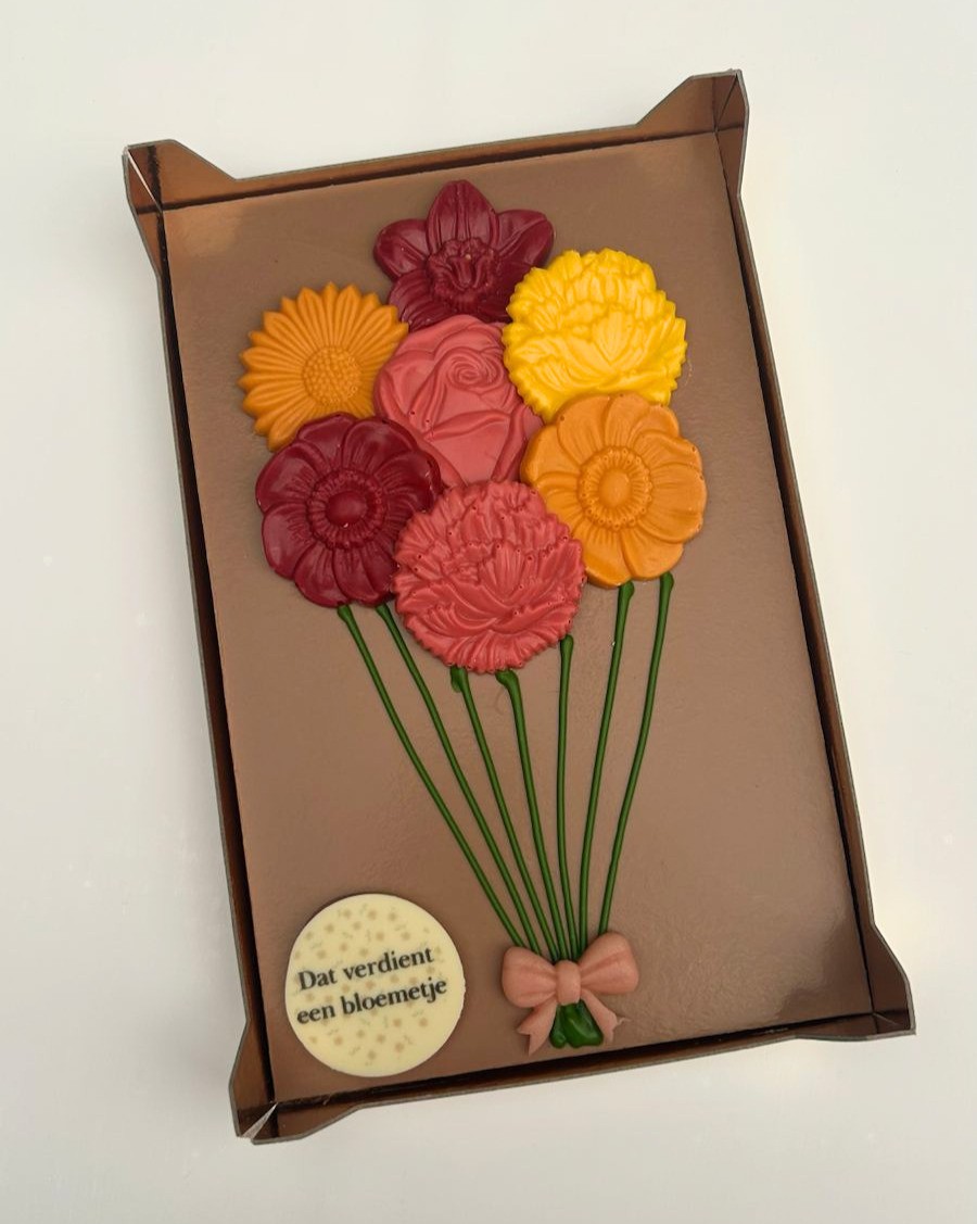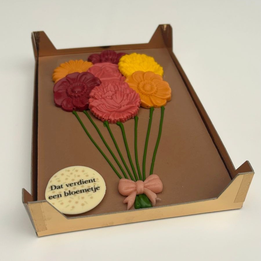 Een bloemetje van waardering maar dan om van te genieten. Een uniek chocoladegeschenk voor momenten van waardering, felicitaties of een speciale Secretaressedag.